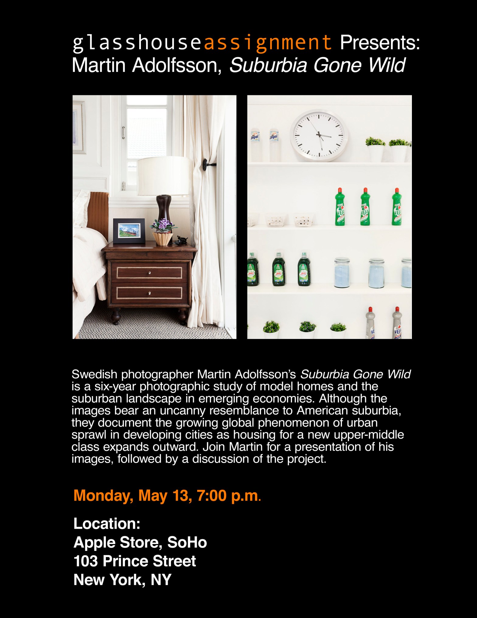 Glasshouse would like to cordially invite you to an event we’re hosting with Apple and Glasshouse friend, Photographer Martin Adolfsson! The Apple Store SoHo hosts evening events that highlight different creative professionals who are doing great projects, and we are honored to be collaborating with them and Martin Adolfsson to celebrate and share Martin’s recentContinue reading “Glasshouse Teams with Apple and Photographer Martin Adolfsson: Monday, May 13th, 2013”