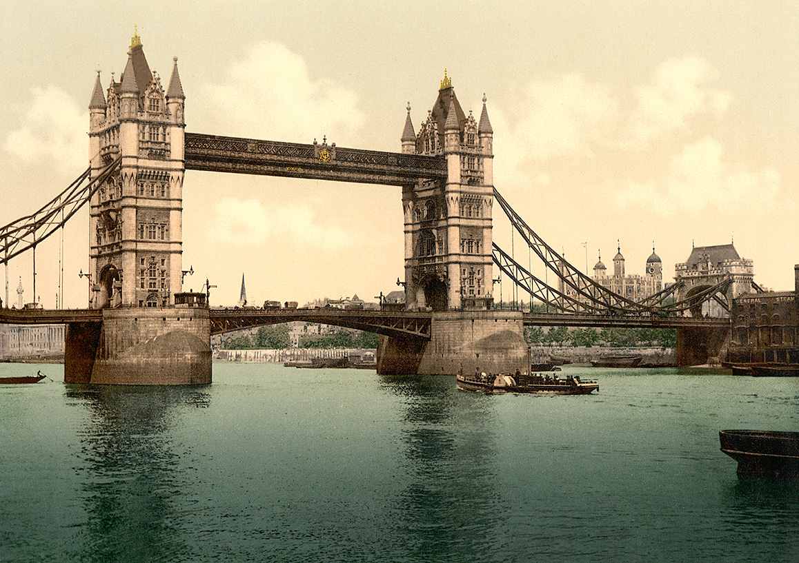 Tower Bridge, London, England, Photochrome Print, Detroit Publishing Company, 1900