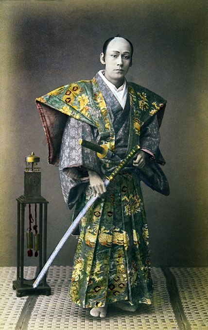 Japanese Samurai, Hand Colored Albumen Photograph, 1880