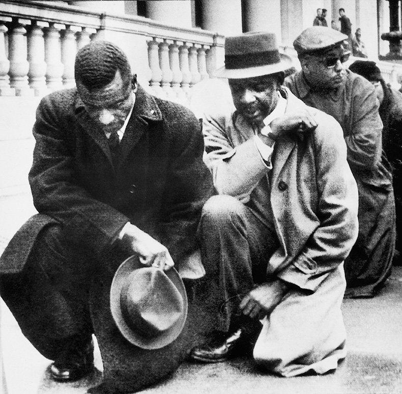 Black Protesters Kneeling Before City Hall, Birmingham, Alabama, USA, Minutes Before Being Arrested for Parading Without a Permit, April 6, 1963