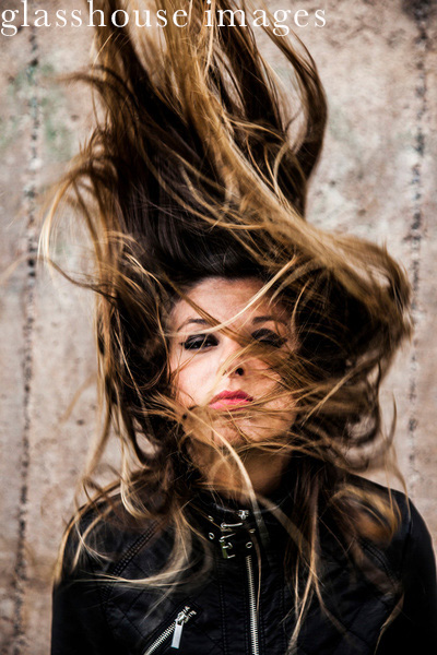 Young Woman Shaking Long Hair in Air